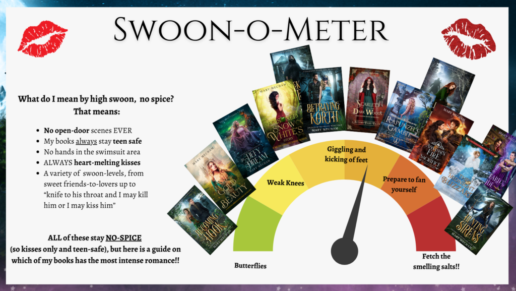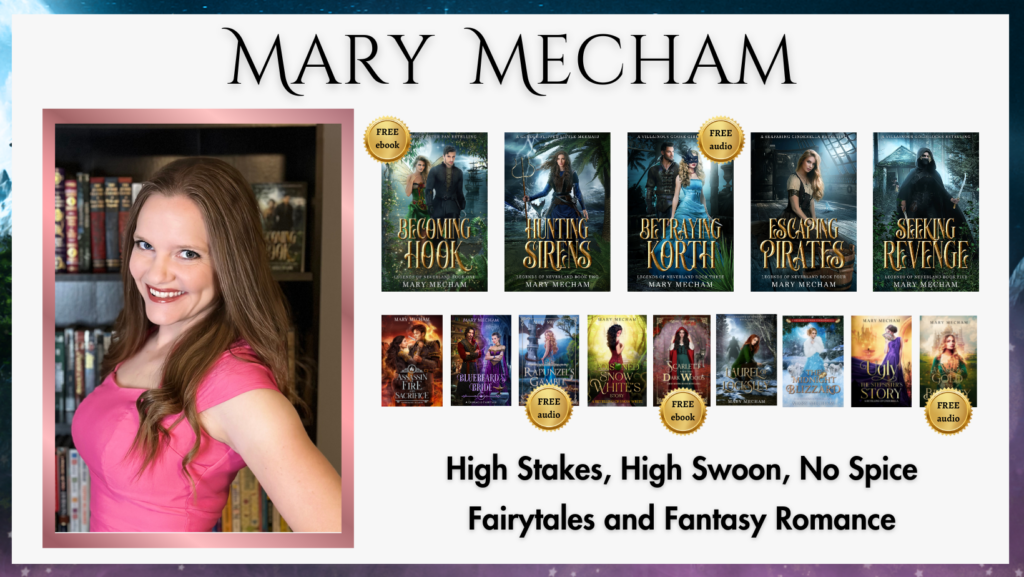 I’m Mary Mecham, a high stakes, high swoon, no spice author who LOVES fairytales and romantasy. I have lots of fun things for you today, including TONS of freebies, so let’s get started!!!