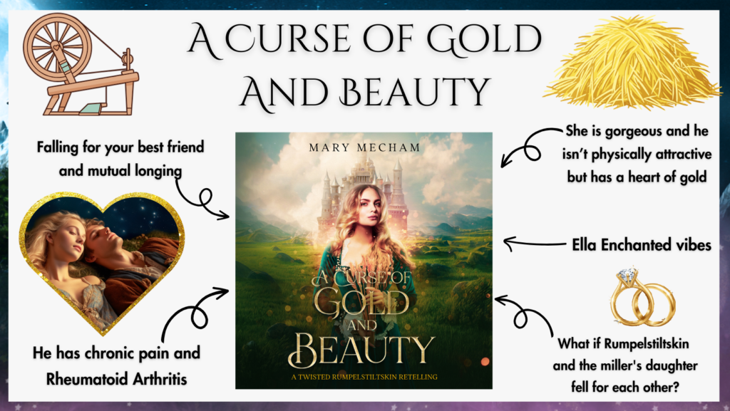If villainous and diabolical fairytales aren’t your jam and you prefer the cute and cozy stories, I’ve got your back! Here is A Curse of Gold and Beauty, a sweet Rumpelstiltskin retelling that will warm your heart.
